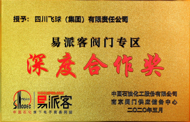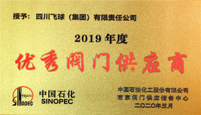 在交流会上,,, ,,,,中国石化南京阀门中心向导对2019年度易派客阀门专区建设深度合作单位、阀门优异供应商单位举行了表扬,,, ,,,,并揭晓了声誉奖牌,,, ,,,,四川飞球(集团)有限责任公司荣获了“中国石化2019年优异供应商”、“易派客阀门专区深度合作奖”。。。 。。。。