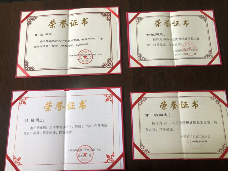 在接手统计事情上,,,,,,甘敏以统计报表填报速率快、数据准确、内容真实,,,,,,连年荣获四川省经济信息委“统计先进事情者”;;;;;;;在统计事情中体现突出,,,,,,让甘敏在2019年中国通用机械工业协会的总结表扬会上,,,,,,再次荣获 “2019年优异统计员”称呼,,,,,,这已经是一连几年荣获该称呼,,,,,,是当之无愧,,,,,,值得各人学习和点赞!与此同时飞球公司也被四川省经济信息委,,,,,,评为“统计先进单位”。。。。。。。。