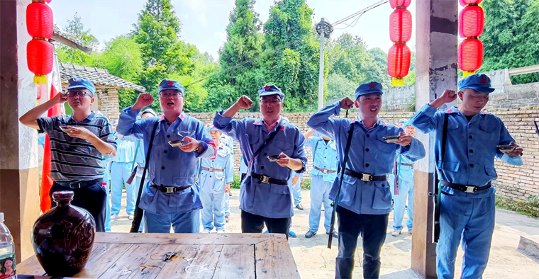 在休整完成后,,,,,全体成员再次出发,,,,,前往名山区红星镇太平村,,,,,体验重走长征路。。。。。。烈日当空,,,,,仍挡不住各人重走长征路的刻意;;;;;;;烈日似火也盖不住各人体验长征路的热情。。。。。。长征是一段厚重而珍贵的历史,,,,,也是老一辈留给我们的名贵精神财产。。。。。。重走长征路能够让各人更深刻的体会到红军坚定信心、忠诚继续,,,,,顾全阵势、严守纪律、细密团结、敢于突破、敢于贡献的长征精神。。。。。。