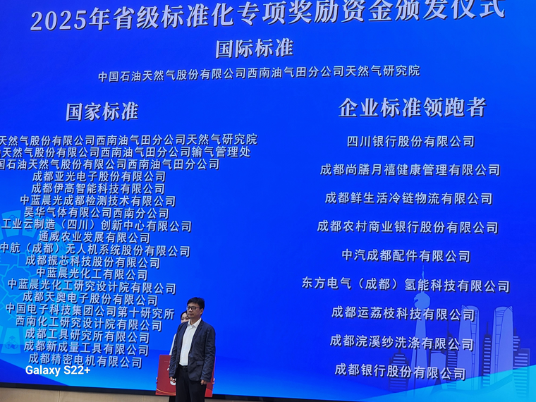 本网讯(刘国倩报道)10月14日,,, , ,第56届天下尺过活成都会宣传运动暨标准赋能“立园满园”主题分享聚会在成都高新区国际人才港盛大召开 。。。。。。在2025年省级标准化专项奖励资金揭晓仪式上,,, , ,中汽成都配件有限公司(以下简称“中汽成配”)入围企业标准领跑者并获奖 。。。。。。公司常务副总司理邹祖立出席了此次盛会 。。。。。。
