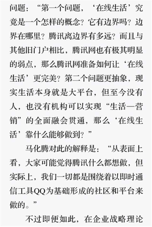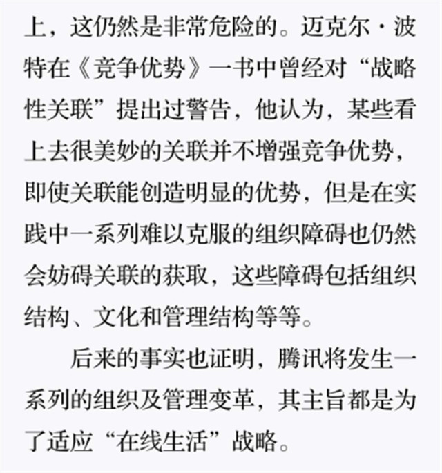 深读之后发明,,,,,,着实全书真正的焦点在于透过腾讯可以视察到的中国企业逻辑,,,,,,其中许多基于国情而降生的特殊能力,,,,,,已往或受诟病或被追捧,,,,,,而本书作者可以以越发客观的姿态对其举行剖析,,,,,,这无疑是一种今世创业者和企业家应当学习的姿态和能力。。。。。。