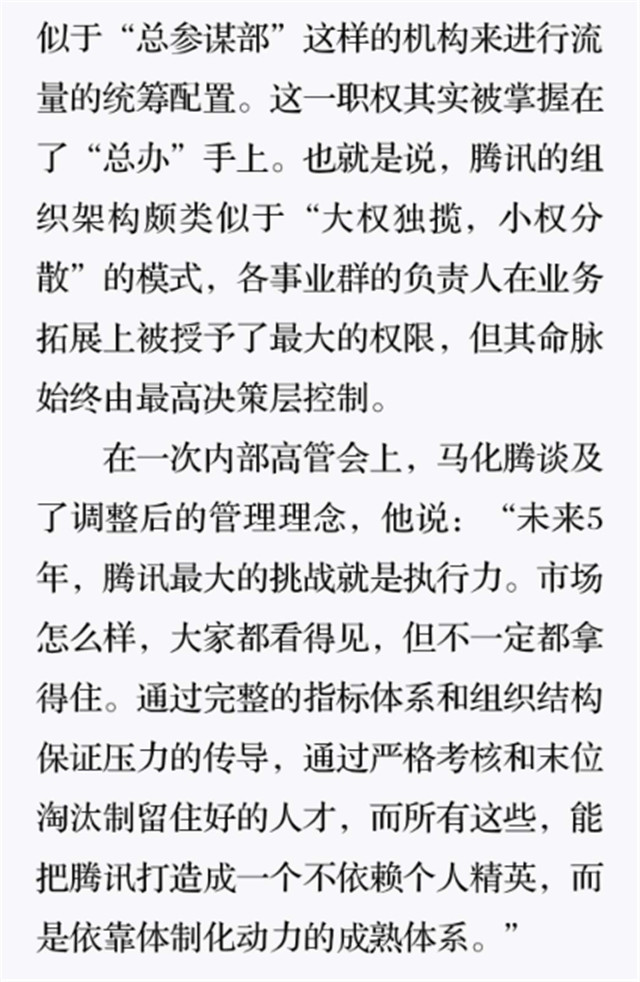深读之后发明,,,,,,着实全书真正的焦点在于透过腾讯可以视察到的中国企业逻辑,,,,,,其中许多基于国情而降生的特殊能力,,,,,,已往或受诟病或被追捧,,,,,,而本书作者可以以越发客观的姿态对其举行剖析,,,,,,这无疑是一种今世创业者和企业家应当学习的姿态和能力。。。。。。。