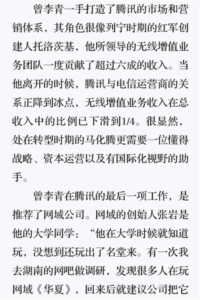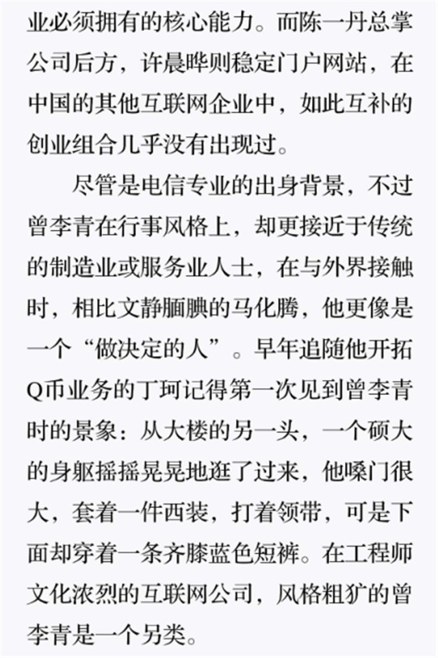 深读之后发明,,,,,,,,着实全书真正的焦点在于透过腾讯可以视察到的中国企业逻辑,,,,,,,,其中许多基于国情而降生的特殊能力,,,,,,,,已往或受诟病或被追捧,,,,,,,,而本书作者可以以越发客观的姿态对其举行剖析,,,,,,,,这无疑是一种今世创业者和企业家应当学习的姿态和能力。。。。。