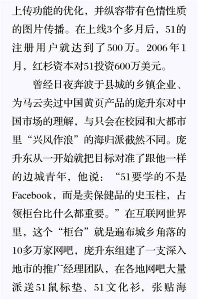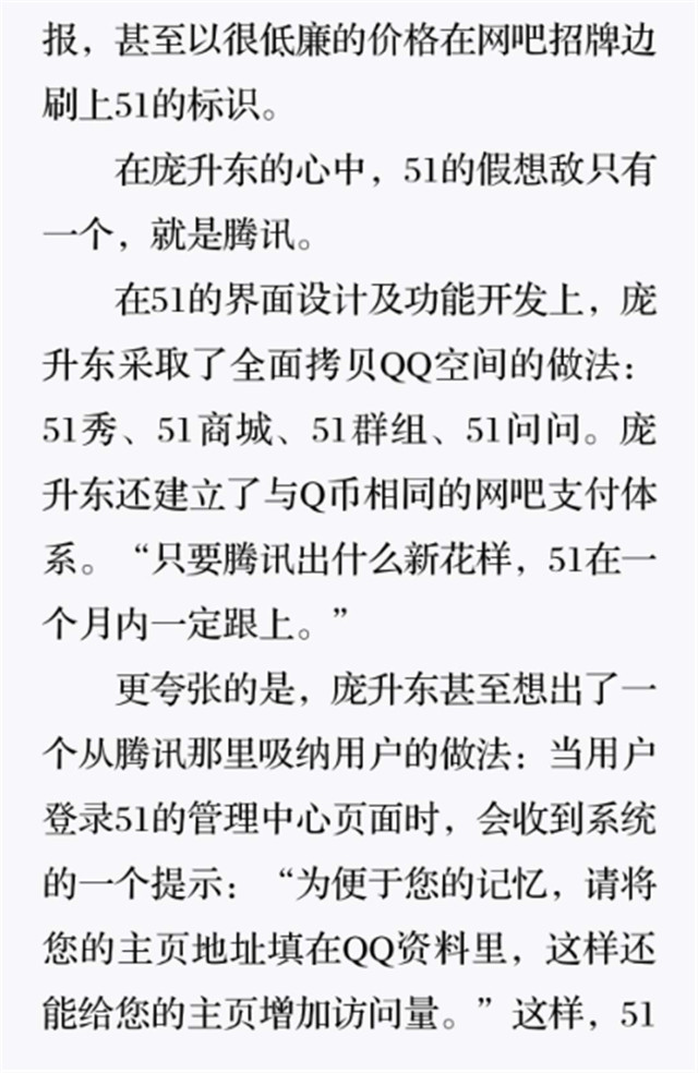深读之后发明,,,,,着实全书真正的焦点在于透过腾讯可以视察到的中国企业逻辑,,,,,其中许多基于国情而降生的特殊能力,,,,,已往或受诟病或被追捧,,,,,而本书作者可以以越发客观的姿态对其举行剖析,,,,,这无疑是一种今世创业者和企业家应当学习的姿态和能力。。。。。