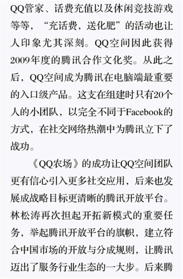 深读之后发明,,,,,,,着实全书真正的焦点在于透过腾讯可以视察到的中国企业逻辑,,,,,,,其中许多基于国情而降生的特殊能力,,,,,,,已往或受诟病或被追捧,,,,,,,而本书作者可以以越发客观的姿态对其举行剖析,,,,,,,这无疑是一种今世创业者和企业家应当学习的姿态和能力。。。。。
