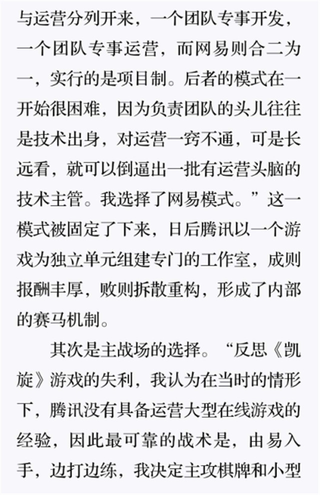 深读之后发明,,,,,,,着实全书真正的焦点在于透过腾讯可以视察到的中国企业逻辑,,,,,,,其中许多基于国情而降生的特殊能力,,,,,,,已往或受诟病或被追捧,,,,,,,而本书作者可以以越发客观的姿态对其举行剖析,,,,,,,这无疑是一种今世创业者和企业家应当学习的姿态和能力。。。。。。