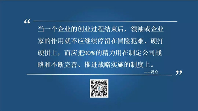 当一个企业的创业历程竣事后,,,,,首脑或企业家的作用就不应继续停留在冒险犯难、硬打硬拼上,,,,,而应把90%的精神用在制订公司战略和一直完善、推进战略实验的制度上。。。。。