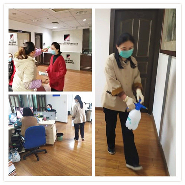 博美公司准备了消毒液、口罩、测温枪、酒精、洗手液等防控物资发放给员工,,,,,,,设立专门职员对所有收支公司职员举行体温检测及挂号。。。。。。公司天天安排专人对办公区域举行消毒,,,,,,,要求天天员工康健报备,,,,,,,充分掌握公司员工返岗情形,,,,,,,做到了对所有职员状态的信息掌控,,,,,,,充分包管了公司情形的清静和员工的身体康健。。。。。。